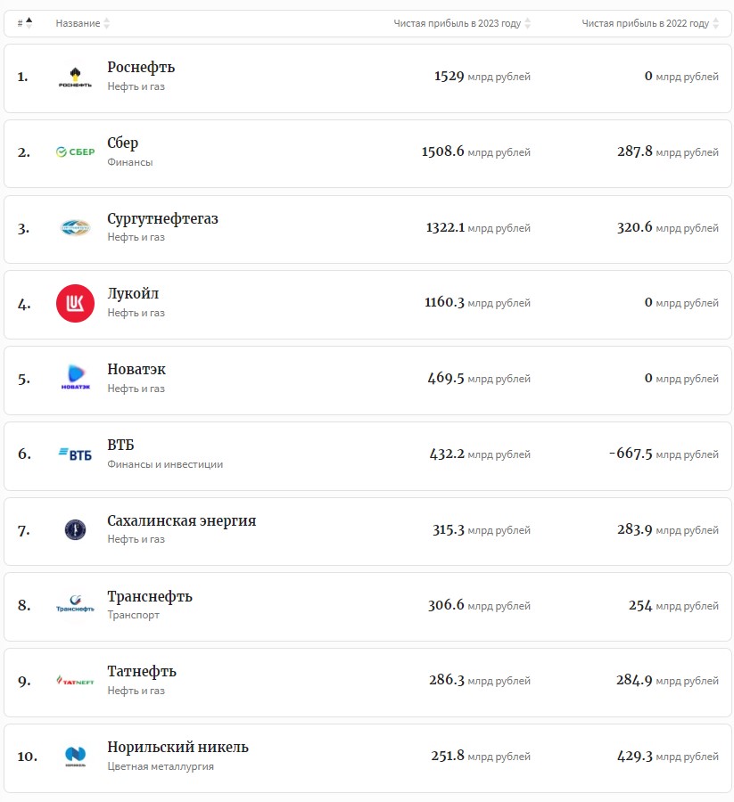 Marja "Xalis mənfəətinə görə Rusiyanın 100 ən böyük şirkəti - 2024" Forbes reytinqinə istinadən xəbər verir ki, 2023-cü ilin yekunları üzrə hazırlanmış reytinqində yeni lider 1,529 trilyon rubl xalis mənfəət əldə edən dövlət neft şirkəti "Rosneft"dir