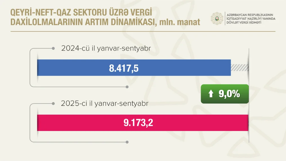 Qeyri-neft-qaz sektorundan vergi və sosial sığorta haqları üzrə daxilolmalar 1 milyard manatdan çox artıb