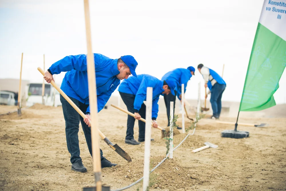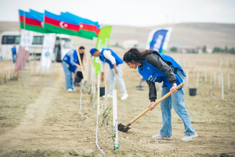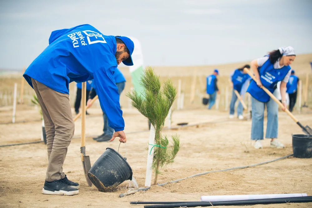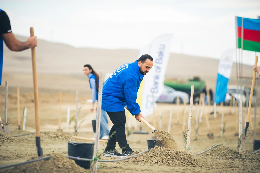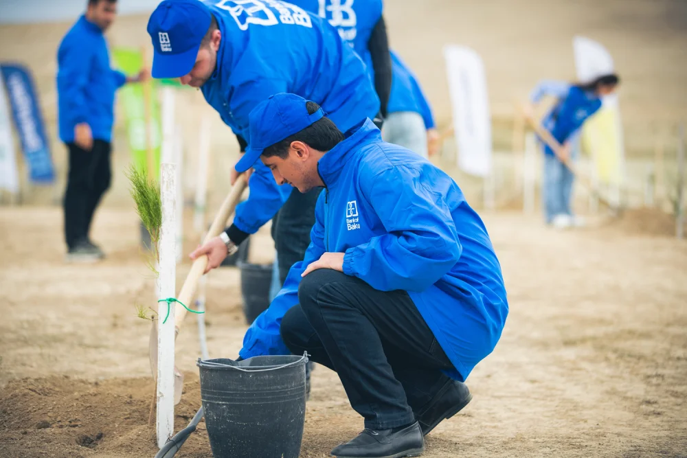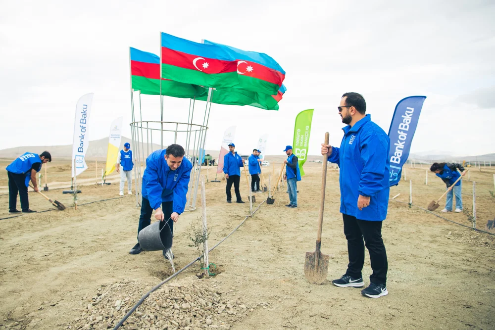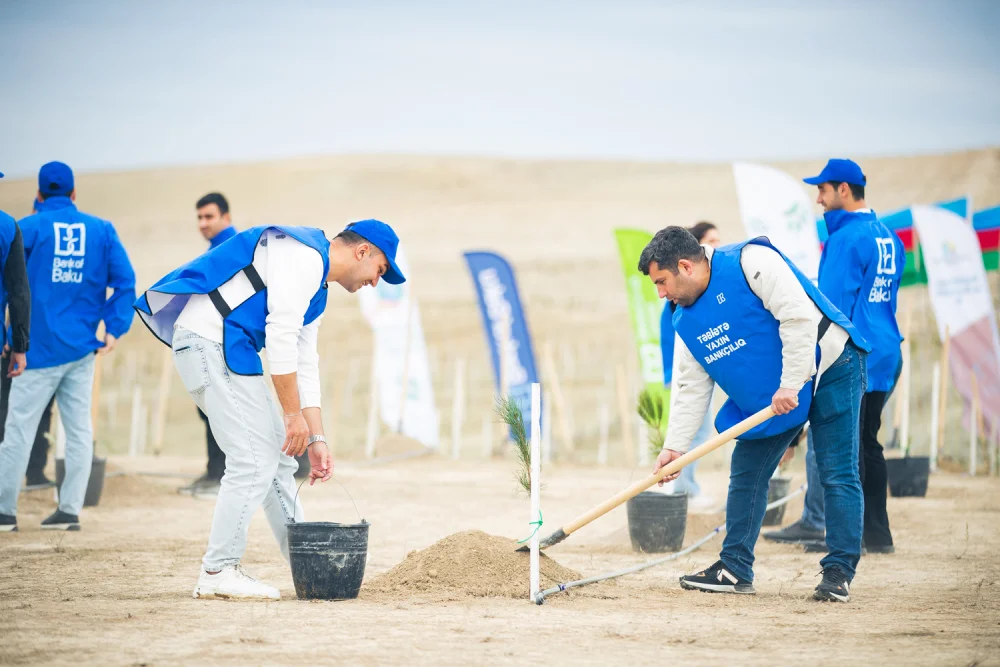 Ekologiya və Təbii Sərvətlər Nazirliyinin dəstəyi ilə baş tutan aksiyada bank əməkdaşları tərəfindən Bakı-Abşeron bölgəsinin torpaq-iqlim şəraitinə uyğun 100-dən çox Eldar şamı və zeytun ağacları əkilib.