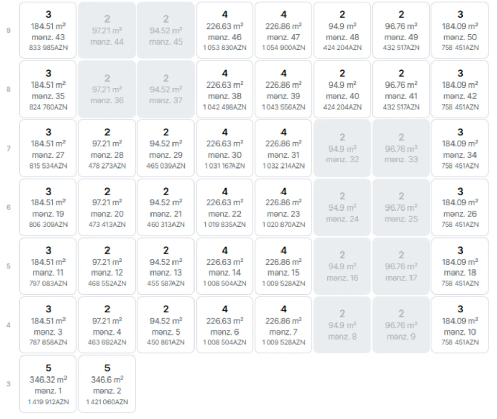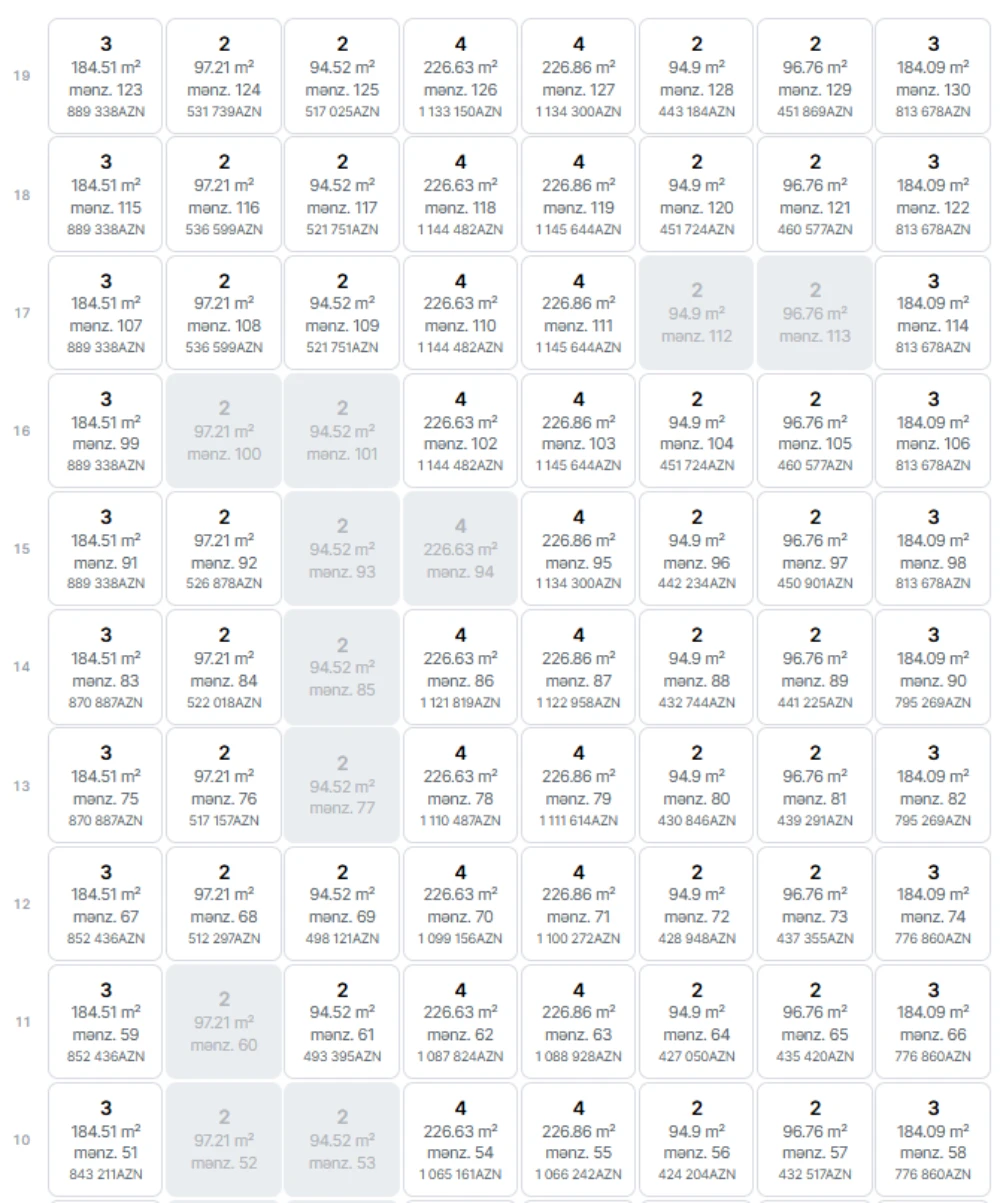 “White Garden” 19 mərtəbədən ibarət, 130 geniş mənzili olan premium sinif yaşayış kompleksidir. Qiymətlər 1 kvadrat metr üçün 4100 manatdan başlayır və 5520 manatadək davam edir.