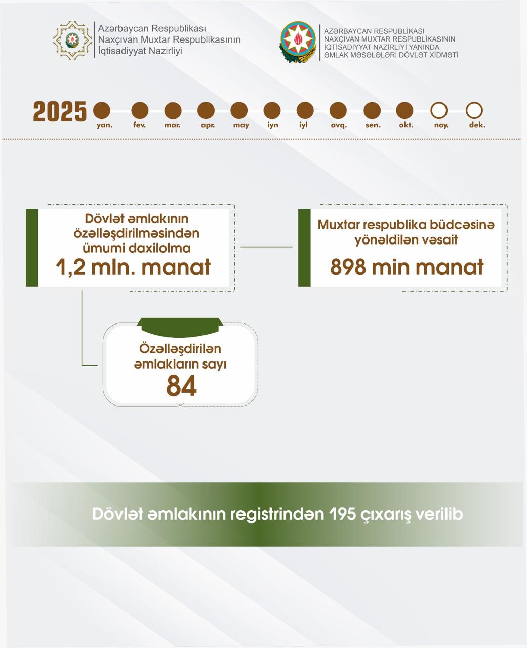 Eyni dövrdə muxtar respublika üzrə dövlət əmlakının registrindən 195 çıxarış verilib.