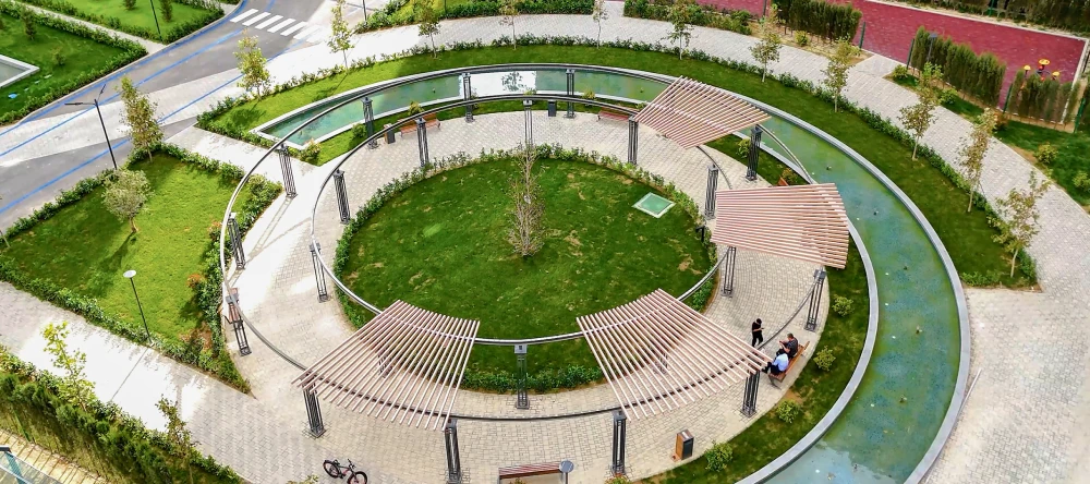 Burada avtomobilsiz həyət sistemi tətbiq olunub. Bu isə həm uşaqlar üçün təhlükəsiz oyun mühiti yaradır, həm də sakinlər üçün sakit, təmiz və rahat həyət atmosferi formalaşdırır. Avtomobillər üçün isə ayrıca qapalı avtodayanacaq nəzərdə tutulub.