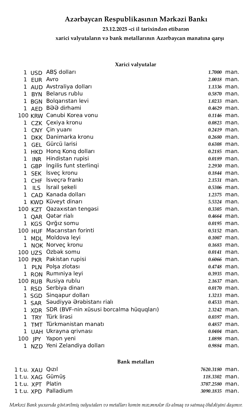 Dolların sabah üçün rəsmi məzənnəsi müəyyən olunub