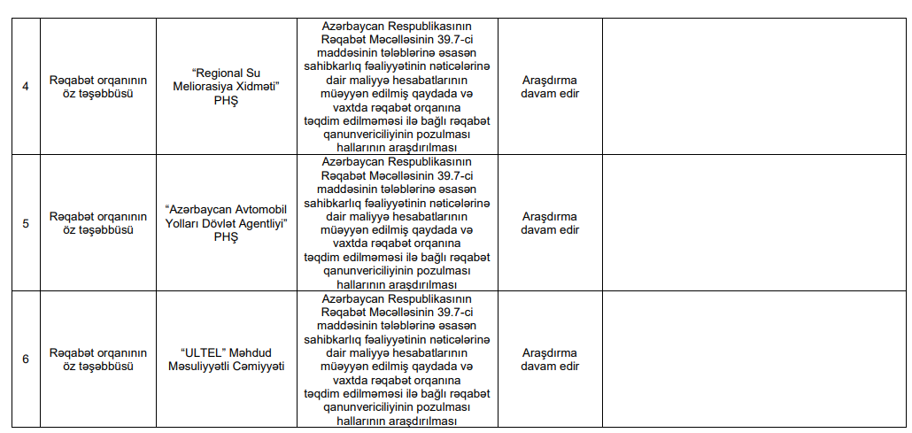 Dövlət Agentliyindən verilən məlumata görə, araşdırmaya rəqabət orqanının öz təşəbbüsü əsasında başlanılıb.