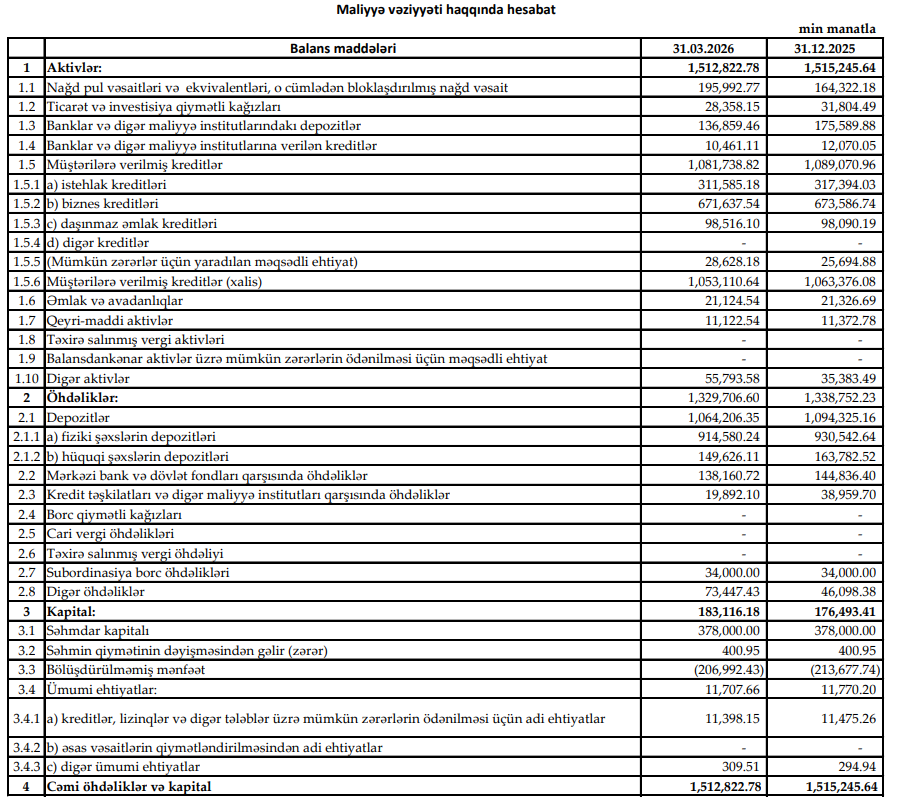 Bank 2025-ci ilin ilk rübünü 11 milyon 200 min manat xalis mənfəət ilə bağlamışdı.