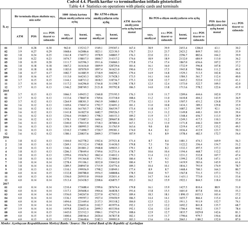 Bu il bir ATM-ə düşən əməliyyatın sayı 1599-2257, əməliyyatın orta ayıq həcmi isə 179.8-192.1 manat arasında dəyişib.