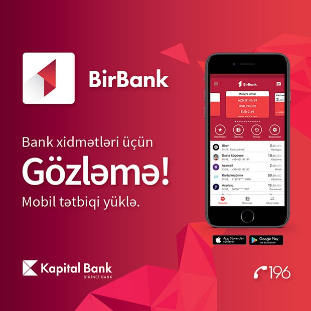 Bu gün "Kapital Bank" ASC-nin yaydığı məlumatda bildirilir ki, Bank onlayn əməliyyatlara və yeni texnologiyalara üstünlük verən müştərilərə yeni Bir Bank tətbiqini təqdim edir. İstifadəçilər 1 dəqiqə vaxt sərf edərək, Kapital Bank-ın istənilən ödəniş kartı ilə onlayn qeydiyyatdan keçməklə xidmətdən yararlana bilərlər.