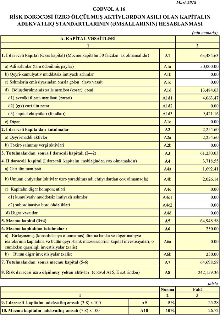 Bankın müştərilərə verdiyi kreditlər ötən ilin sonundakı 67 milyon 884 min manatdan 79 milyon 414 min manata yüksəlib. Depozitlər isə 80 milyon 128 min manatdan 89 milyon 133 min manata qalxıb.