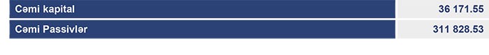 Bank 2017-ci ilin sonunda 399 milyon 860 min manat cəmi aktivlərə, 363 milyon 272 min manat cəmi öhdəliklərə və 36 milyon 587 min manat cəmi balans kapitalına malik idi.