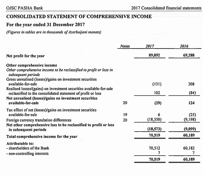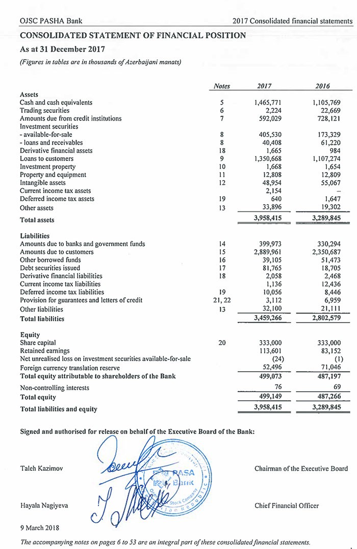 Azərbaycanın iri korporativ bankı olan "PAŞA Bank" ASC 31 dekabr 2017-ci il tarixinə konsolidə edilmiş müstəqil auditorların hesabatını dərc edib.