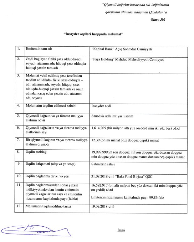 “PAŞA Holdinq”dən “Kapital Bank”a 20 milyon manata yaxın dəstək