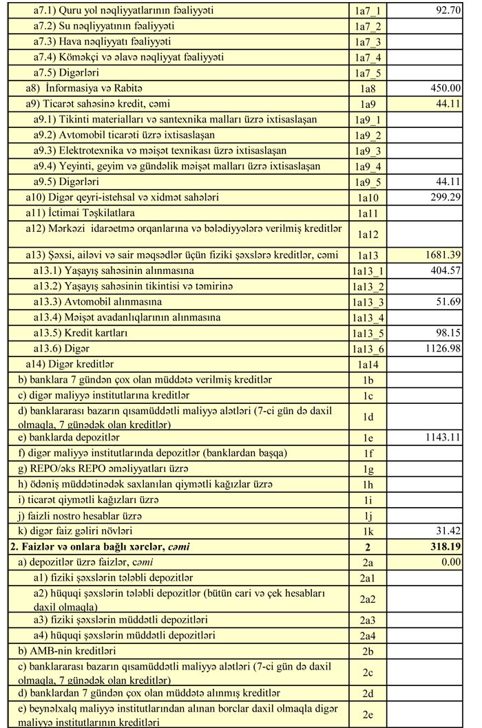 Belə ki, cari ilin yanvar-sentyabr dövründə Bankın faiz gəlirləri 5 milyon 81 min manat, qeyri-faiz gəlirləri 2 milyon 701 min manat təşkil edib (Cəmi gəlirlər 7 milyon 782 min manat).
