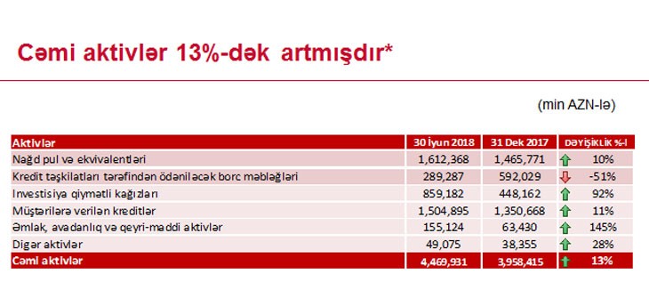 30 iyun 2018-ci il tarixinə Bankın aktivləri aşağıdakılardan ibarətdir: