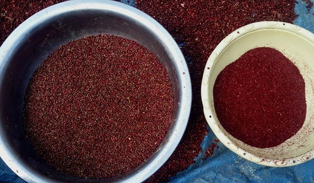 “Bir insan ağaclardan gün ərzində 20 kiloqramadək sumaq yığa bilər ki, bundan da cəmi 3-4 kiloqram təmiz ədviyyat alınır. Bitki yığıldıqdan sonra bir müddət qurudulur. Həmin xammal döyülür və meyvələr zoğdan ayrılır. Meyvələr ikinci dəfə tam quruyanadək saxlanıldıqdan sonra yenidən emal olunur. Bunun üçün meyvələr xüsusi torbalara doldurularaq toxumlarından ayrılanadək əzilir. Əldə edilən məhsul ələkdən keçirildikdən sonra hazır vəziyyətə gəlir”, - deyə M. Salahova söyləyir.