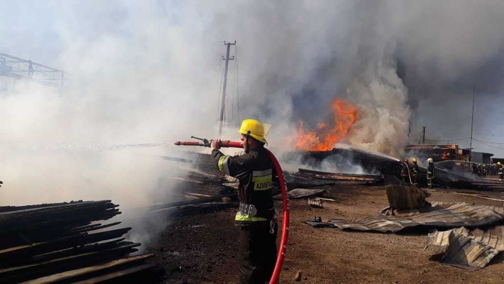 Nərimanov rayonu, “Baksol” yolunda yerləşən “Taxta Bazarı”nda yanğın başlayıb.