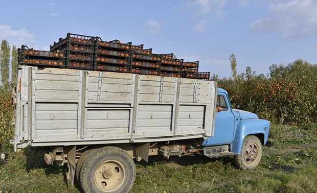 Bağda yığılan xurma anbara daşınır. Burada yeşiklərə yığılaraq Rusiya və Ukraynaya göndərilir. Xurmanın daşınmasını həyata keçirən Fərhad Zeynalzadə Rusiya bazarlarında xurma meyvəsinə tələbatın yüksək olduğunu bildirib.