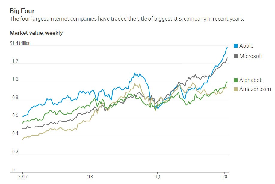 İndiyədək "Apple", "Microsoft", "Amazon" və "Saudi Aramco" şirkətlilərinin bazar dəyərləri 1 trilyon dolları keçmişdir.