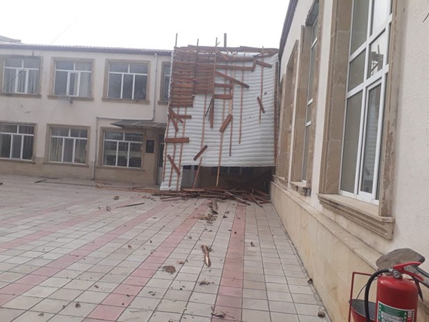 Güclü külək ziyan vurdu - MƏKTƏBLƏRİN DAMLARI UÇUB