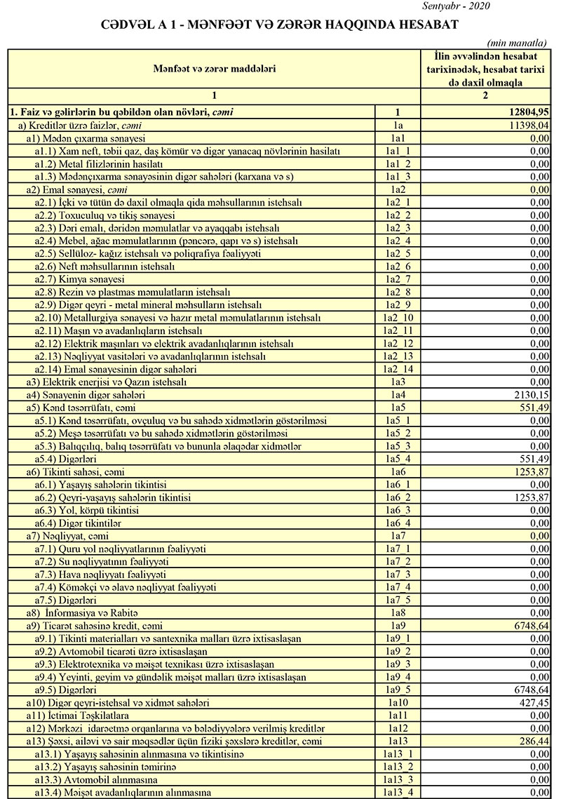 “Ziraat Bank Azərbaycan”da ötən ilin 9 ayında 13 milyon 18 min manat təşkil etmiş faiz gəlirləri 2020-ci ilin 9 ayında 12 milyon 805 min manat, ötən ilin 9 ayında 2 milyon 761 min manat təşkil etmiş qeyri- faiz gəlirləri isə cari ilin 9 ayında 4 milyon 537 min manat təşkil edib.