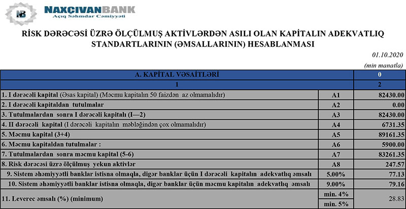 30 Sentyabr 2020-ci il tarixində “Naxçıvanbank” 83 milyon 261 min manat məcmu kapitala malik olub.