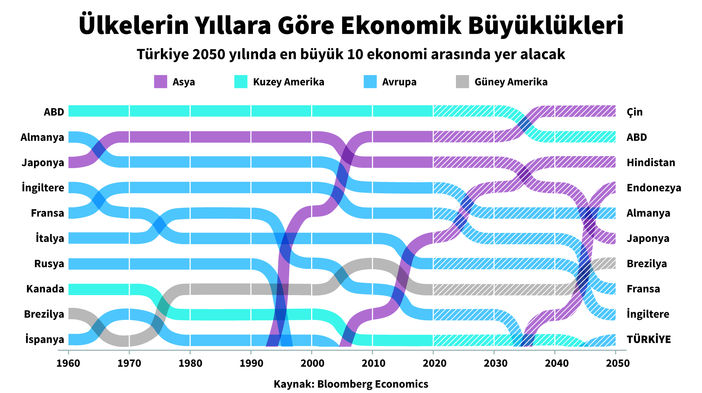 Bloomberg Economics-in qiymətləndirməsinə görə, Türkiyə 2050-ci ildə ən böyük iqtisadiyyatlar arasında 10-cu yeri tuta bilər.