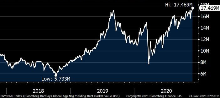 Pandemiyadan əvvəl geriləmə qeyd edən mənfi faizli istiqrazların cəmi məbləği yeni rekord qırıb.