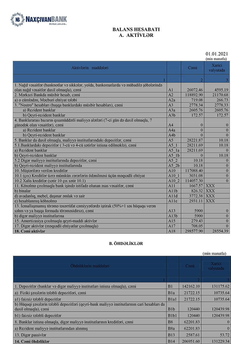 “Naxçıvanbank” ASC 2020-ci ili 7 milyon 323 min manat xalis mənfəət ilə başa vurub. Bank 2019-cu ili 5 milyon 179 min manat xalis mənfəətlə bağlamışdı.