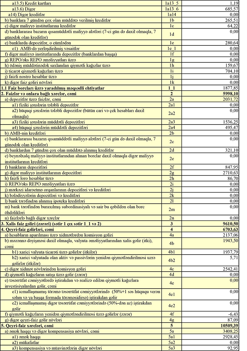 Ötən il Bankın faiz gəlirləri 356 min manat, qeyri-faiz gəlirləri isə 2 milyon 551 min manat artıb.