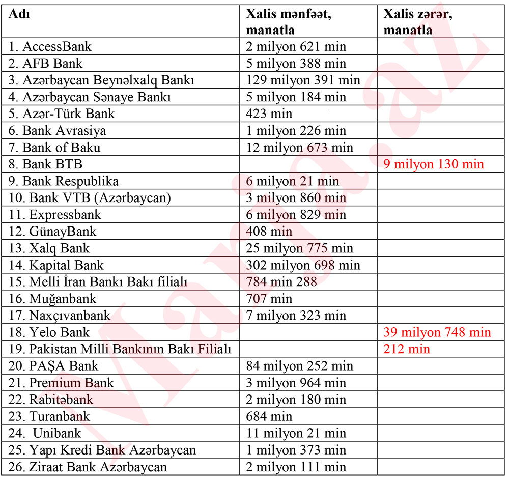 Mənfəət və zərər edən banklar - SİYAHI