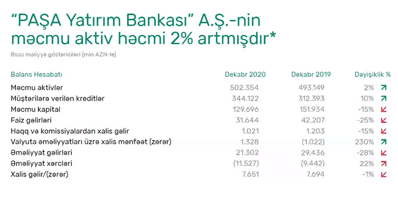 PAŞA Bank qrupu (PAŞA Bank Azərbaycan, PAŞA Bank Türkiyə və PAŞA Bank Gürcüstan) 2020-ci ili 79 milyon 483 min manat xalis mənfəət ilə başa vurub. 2019-cu illə müqayisədə qrupun xalis mənfəəti 3% artıb.