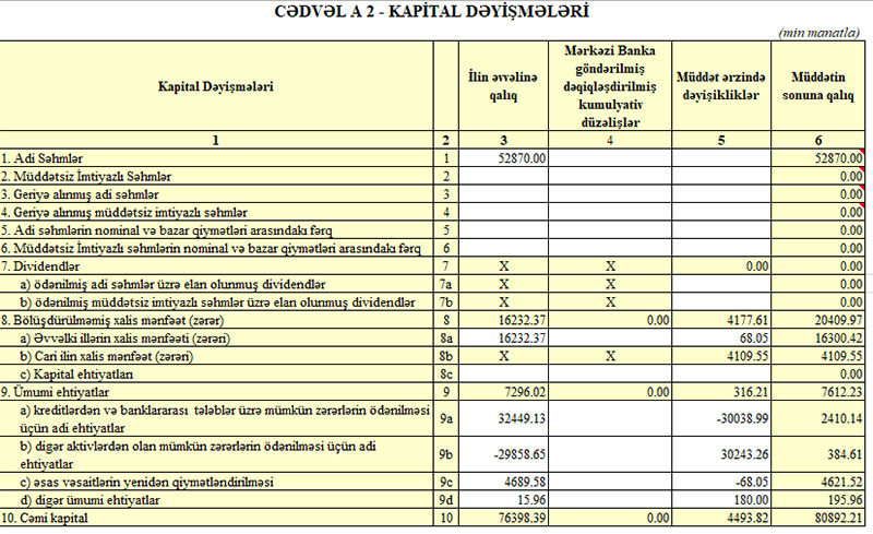 22 bankdan 5-nin balans kapitalı 240 milyon manatdan çox olub - SİYAHI