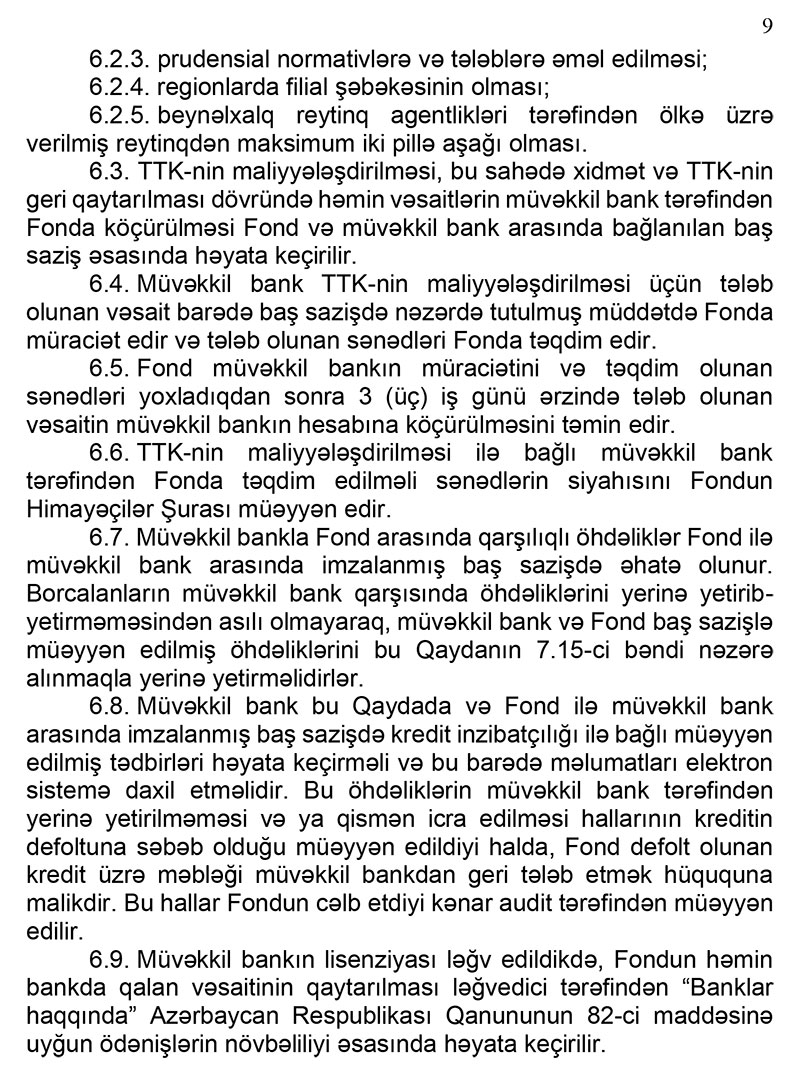 - TTK Fondun vəsaiti hesabına bu Qayda ilə müəyyən edilmiş tələbələrə müvəkkil bank tərəfindən verilir.