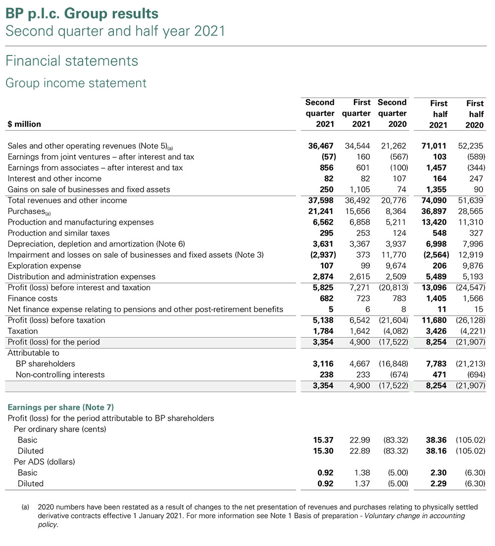 Böyük Britaniyanın neft-qaz şirkəti, dünyanın ən iri enerji nəhənglərindən biri BP (British Petroleum) 2021-ci ilin 2-ci rübünün və ilk yarısının maliyyə nəticələrini açıqlayıb.