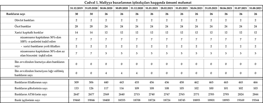 31 avqust 2021-ci il tarixinə olan bank sektorunun əsas göstəriciləri açıqlanıb.