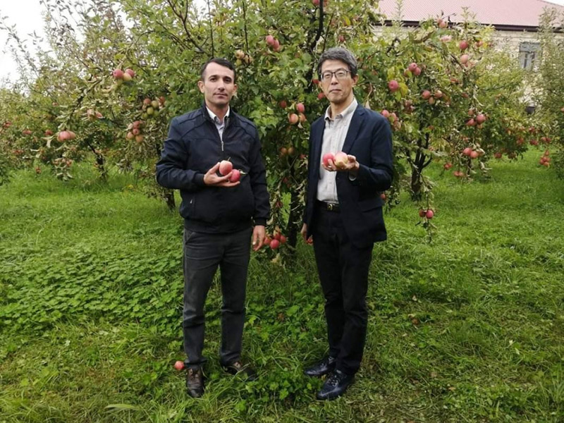 Səfir Cuniçi Vada təsərrüfat sahibi ilə fikir mübadiləsi aparıb, Yaponiyadan gətirilən alma sortlarının məhsuldarlığı ilə maraqlanıb. Səfirə məlumat verilib ki, bol məhsul yetişən alma bağında yaxın günlərdə məhsul yığımına başlanacaq.