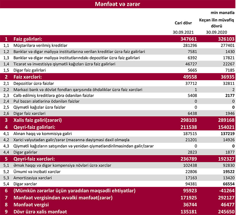 2021-ci ilin 9 ayında "Kapital Bank" ASC-nin xarici valyutadan gəliri artıb.