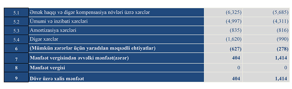 Müqayisə üçün qeyd edək ki, 2020-ci ilin yanvar-sentyabr dövründə “Turanbank”ın cəmi əməliyyat gəlirləri 30 milyon 111 min manat, cəmi əməliyyat xərcləri 28 milyon 419 min manat, əməliyyat mənfəəti 1 milyon 692 min manat təşkil etmişdi. Bank mümkün zərərlər üçün yaradılan məqsədli ehtiyata 278 min manat ayırdığından həmin dövrü 1 milyon 414 min manat xalis mənfəət ilə bağlamışdı.