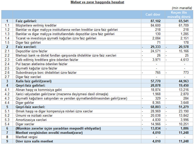 Azərbaycanın məşhur bankının əməliyyat mənfəəti kəskin artıb