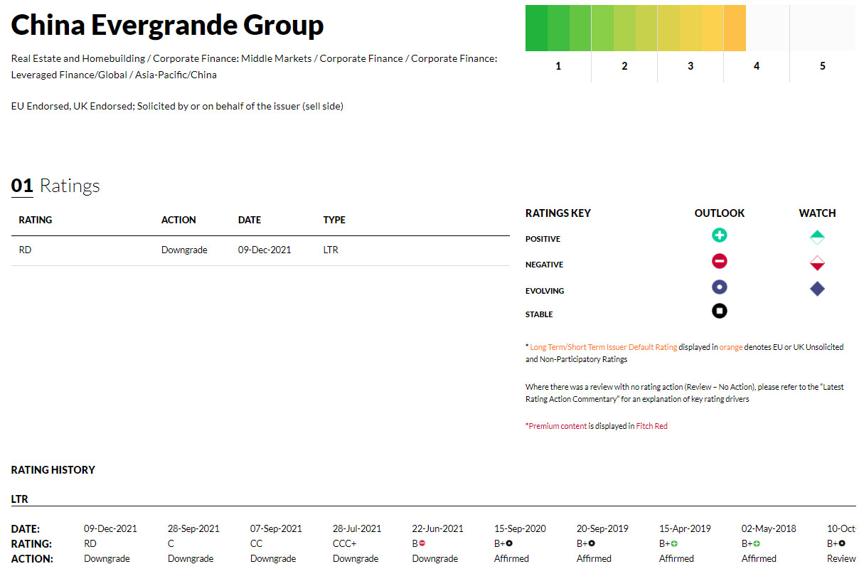 Xarici valyutada emitentin uzunmüddətli defolt reytinqi həm ana şirkət "Evergrande" və onun törəmə şirkətləri "Hengda Real Estate Group" və "Tianji Holding Limited" üzrə də aşağı salınıb.