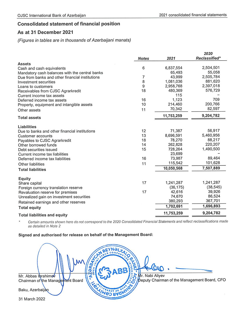 “ABB” ASC 31 dekabr 2021-ci il tarixində başa çatan il üzrə müstəqil auditorun hesabatı ilə birlikdə konsolidasiya edilmiş maliyyə hesabatlarını dərc edib.