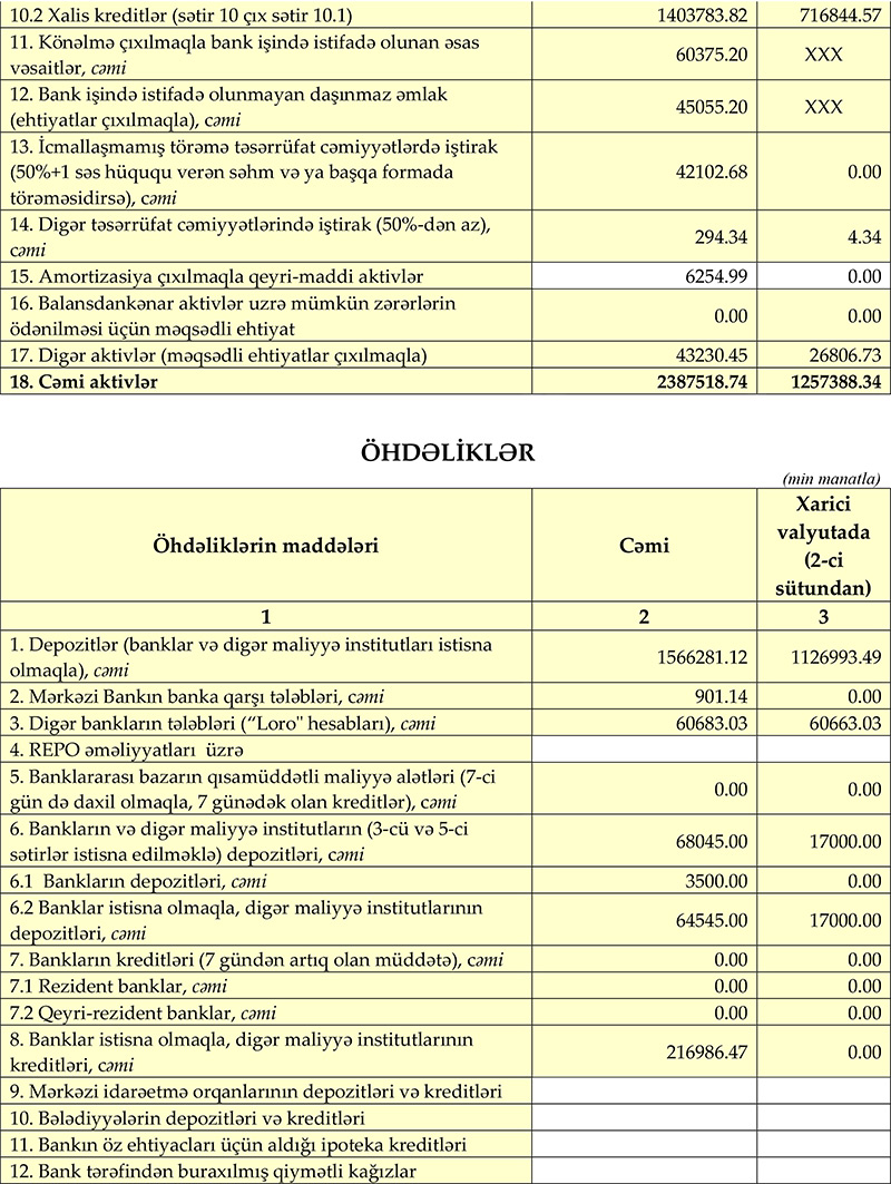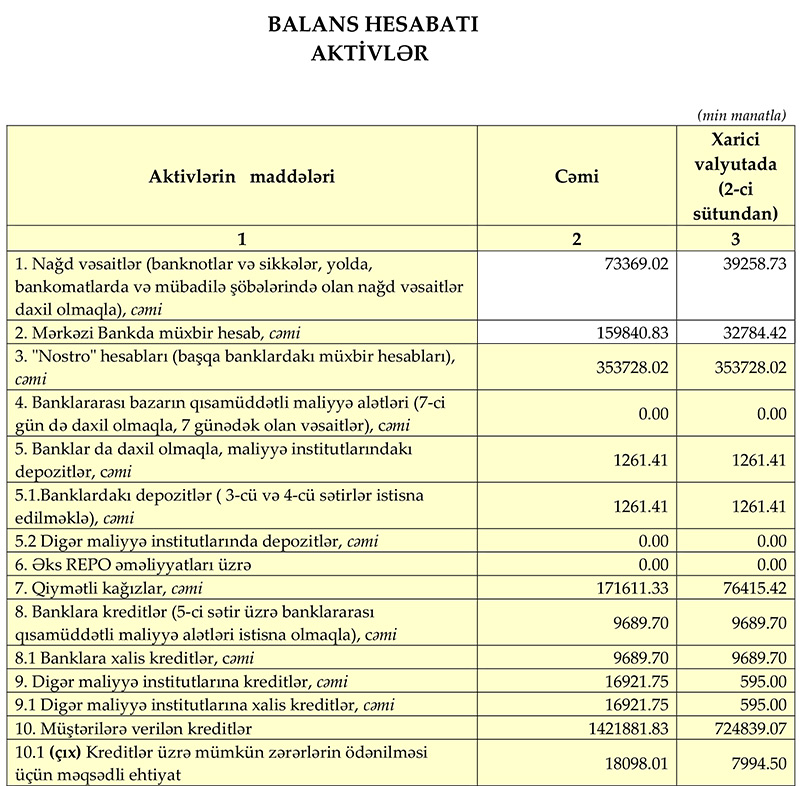 Bankın depozit portfeli isə ötən ilin sonundakı 1 milyard 543 milyon 28 min manatdan 31 Mart 2022-ci il tarixində 1 milyard 566 milyon 281 min manata çatıb.