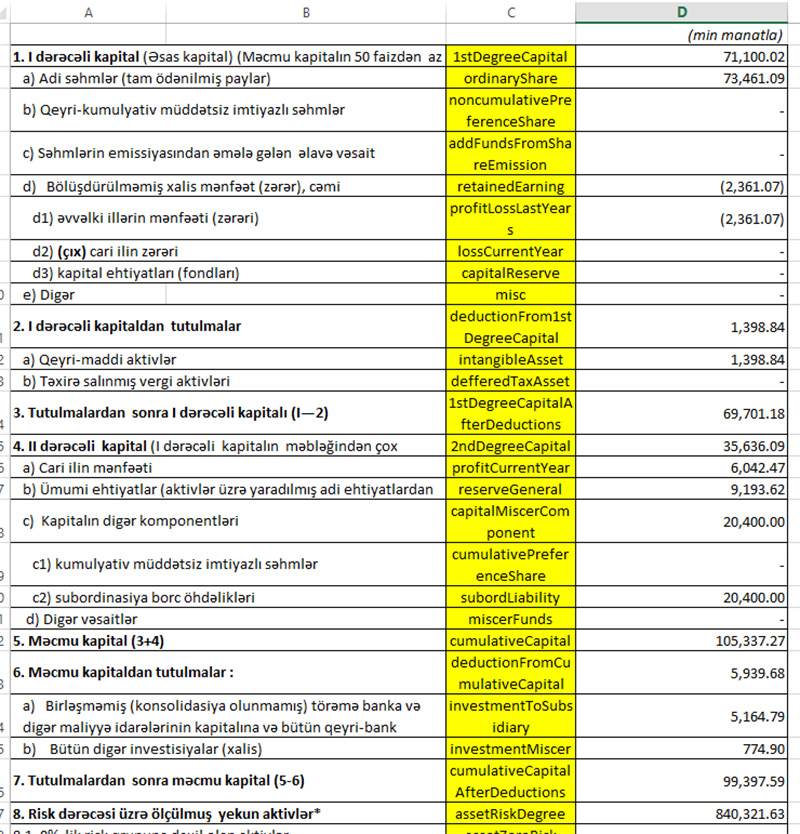 Bundan başqa, Bankın I dərəcəli kapitalın adekvatlıq əmsalı 8,29%, məcmu kapitalın adekvatlıq əmsalı isə 11,83% təşkil edib ki, bu da normadan müvafiq olaraq 1,7 dəfə və 1,2 dəfə çoxdur.