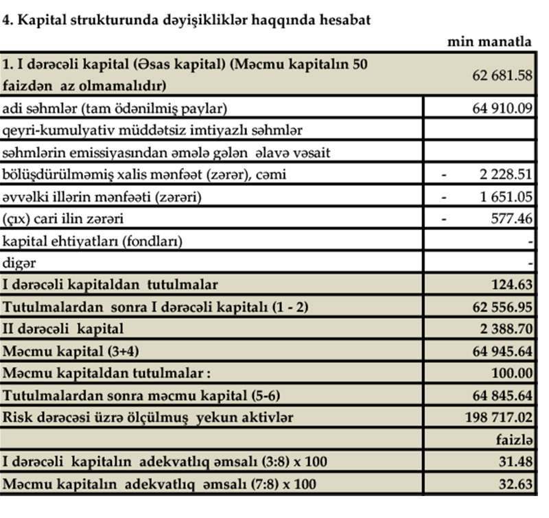 Eyni zamanda Bankın kredit portfelində də, ilin əvvəli ilə müqayisədə 3 531 000 manat və ya 2 faiz artım baş vermişdir.