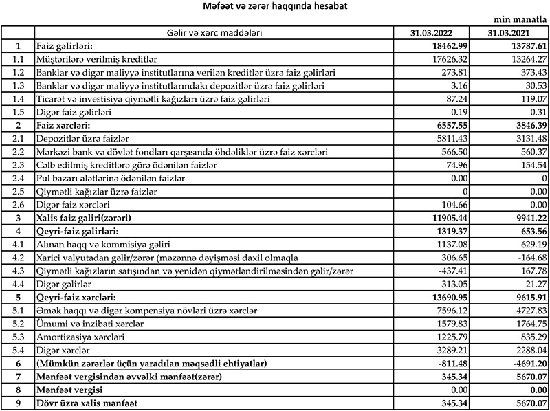 2021-ci ilin 1-ci rübü ilə müqayisədə 2022-ci ilin 1-ci rübündə Yelo Bankın xalis mənfəəti 16 dəfədən çox azalıb.