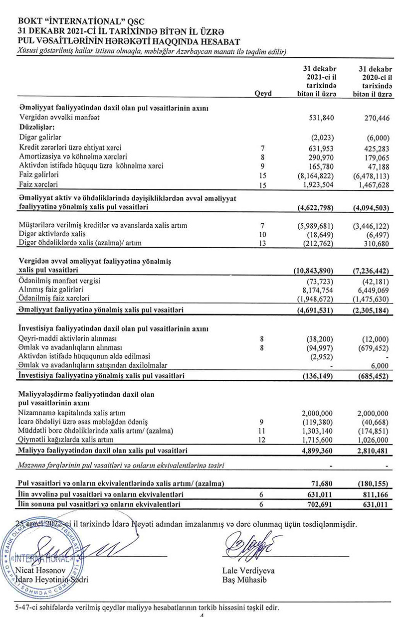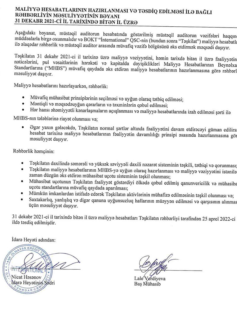 BOKT "İnternational" QSC 2021-ci ili 410 min 553 manat xalis mənfəət ilə başa vurub. Halbuki, təşkilat 2020-ci ili 201 min 902 manat xalis mənfəət ilə bağlamışdı. Beləliklə, 2020-ci illə müqayisədə 2021-ci ildə BOKT "İnternational"ın xalis mənfəəti 2 dəfədən çox artıb.