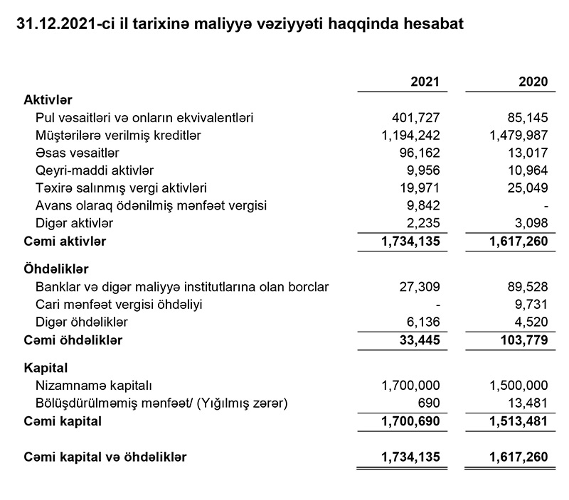 2020-ci illə müqayisədə 2021-ci ildə “Azmikroinvest” kredit portfeli (müştərilərə verilmiş kreditlər) 7% azalaraq 1 milyon 194 min 242 manata düşüb.