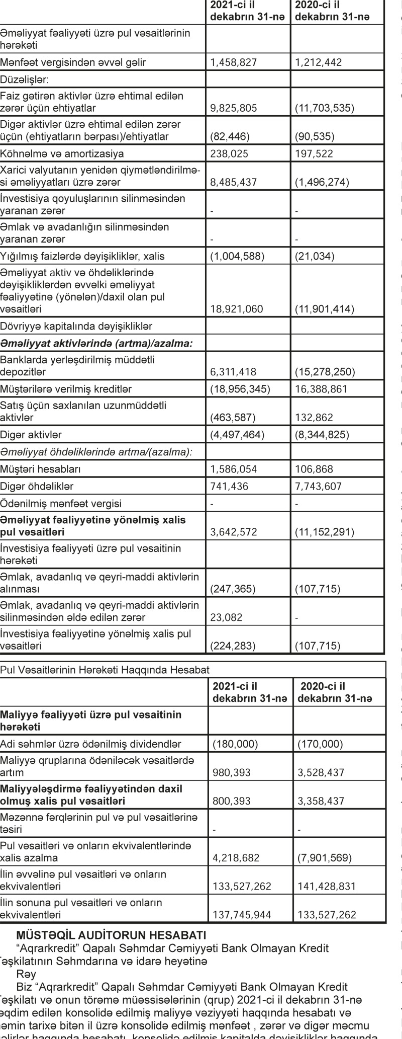 “Aqrarkredit” QSC Bank Olmayan Kredit Təşkilatı 2021-ci ili 1 milyon 191 min 229 manat xalis mənfəət ilə başa vurub. Halbuki, təşkilat 2020-ci ili 866 min 689 manat xalis zərər ilə bağlamışdı. Beləliklə, 2020-ci illə müqayisədə 2021-ci ildə “Aqrarkredit”in xalis mənfəəti 37,4% artıb.