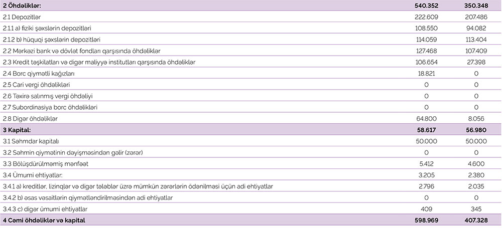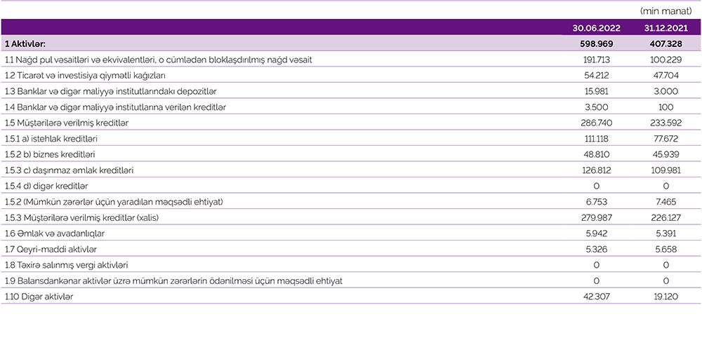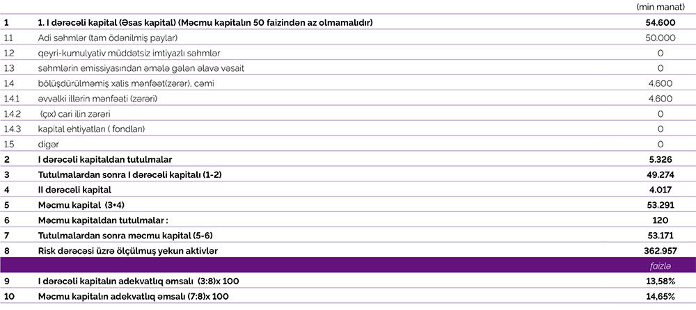 Bank tərəfindən müştərilərə verilmiş kreditlər 53 milyon 148 min manat artaraq 286 milyon 740 min manata, o cümlədən istehlak kreditləri portfeli 33 milyon 446 min manat artaraq 111 milyon 118 min manata, biznes kreditləri portfeli 2 milyon 871 min manat artaraq 48 milyon 810 min manata, ipoteka kreditləri portfeli 16 milyon 831 min manat artaraq 126 milyon 812 min manata yüksəlib.