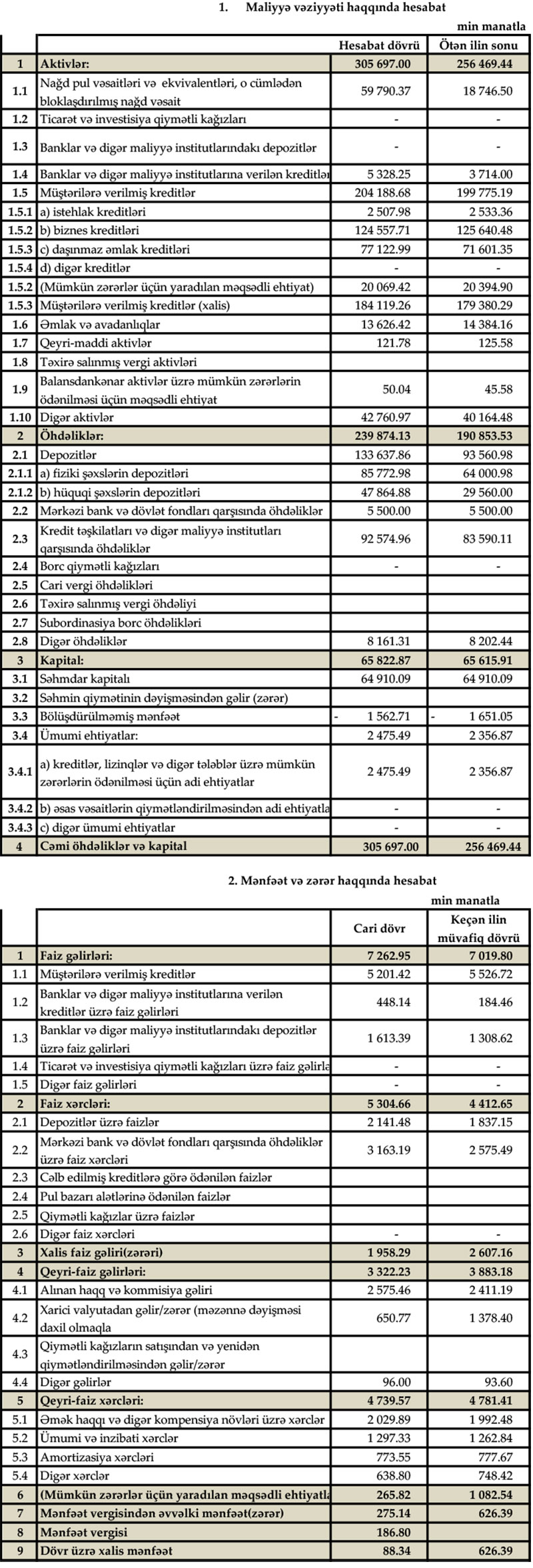 Müqayisə üçün qeyd edək ki, 2021-ci ilin birinci yarısında "Günay Bank"ın cəmi əməliyyat gəlirləri 10 milyon 903 min manat, cəmi əməliyyat xərcləri 9 milyon 194 min manat, əməliyyat mənfəəti 1 milyon 708 min manat təşkil etmişdi. Bank mümkün zərərlər üçün yaradılan məqsədli ehtiyatlara 1 milyon 82 min manat ayırdığından mənfəət 626 min manata düşmüşdü.