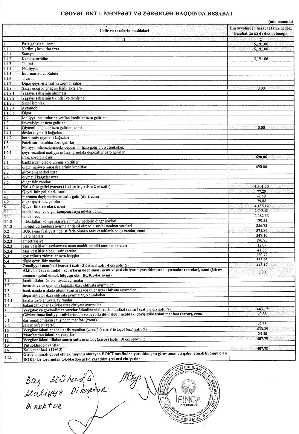 "FİNCA Azerbaijan" 2021-ci ili 2 milyon 611 min manat xalis mənfəət ilə bağlamışdı.